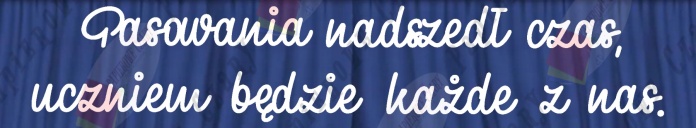 Napis "Pasowania nadszedł czas, uczniem będzie każde z nas."